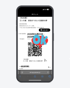 スマホ操作に慣れている方は、QRチケットの購入から入場までオンライン(ART PASS)で完結。最寄りのコンビニエンスストア(マルチメディア端末設置店舗)またはプレイガイド、中日新聞販売店などでも、絵柄チケットや紙チケットを購入できます。