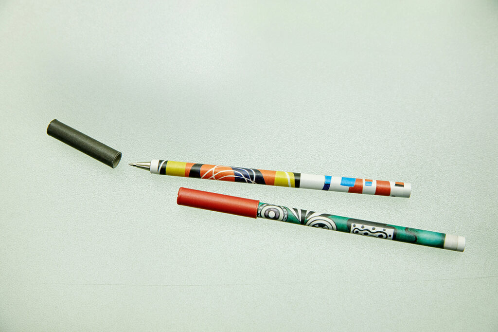 今日から始める、エコ活動の第一歩。再生紙の紙管でできたキャップ式の紙ペン(1本280円、2本セット500円)は、使用後は分解して分別処理もOKという地球に優しいところが魅力です。しっくりと手に馴染み、ペンの色はどちらも黒。フェルナン・レジェ《緑の背景のコンポジション(葉のあるコンポジション)》や瑛九(えいきゅう)《白い輪》のデザインに、創作意欲を掻き立てられます。