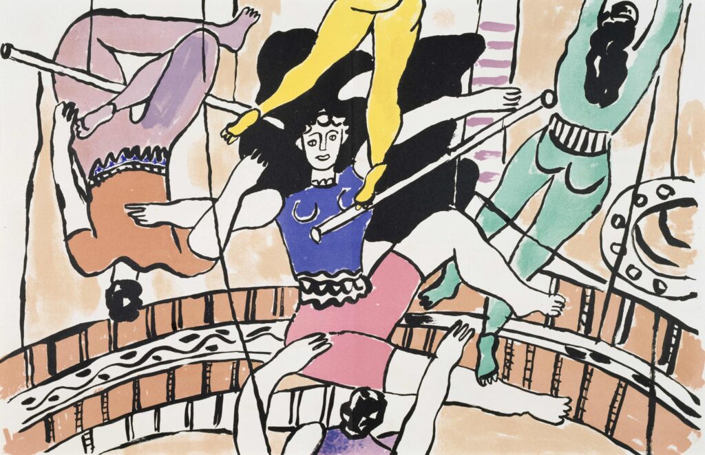 サーカスは、近代の人気のある娯楽として、パブロ・ピカソをはじめ20世紀前半の多くの画家たちに描かれてきました。フェルナン・レジェもまたサーカスをテーマに選び、自ら執筆したテキストとともに83点のリトグラフを収めた挿絵本を作りました。にぎやかで楽しげなイメージがたくさん描かれていますが、フェルナン・レジェの関心は、形の重なり合いに向けられているようです。それぞれ薄い1枚のリトグラフには、複雑に層が重なった世界が広がっています。