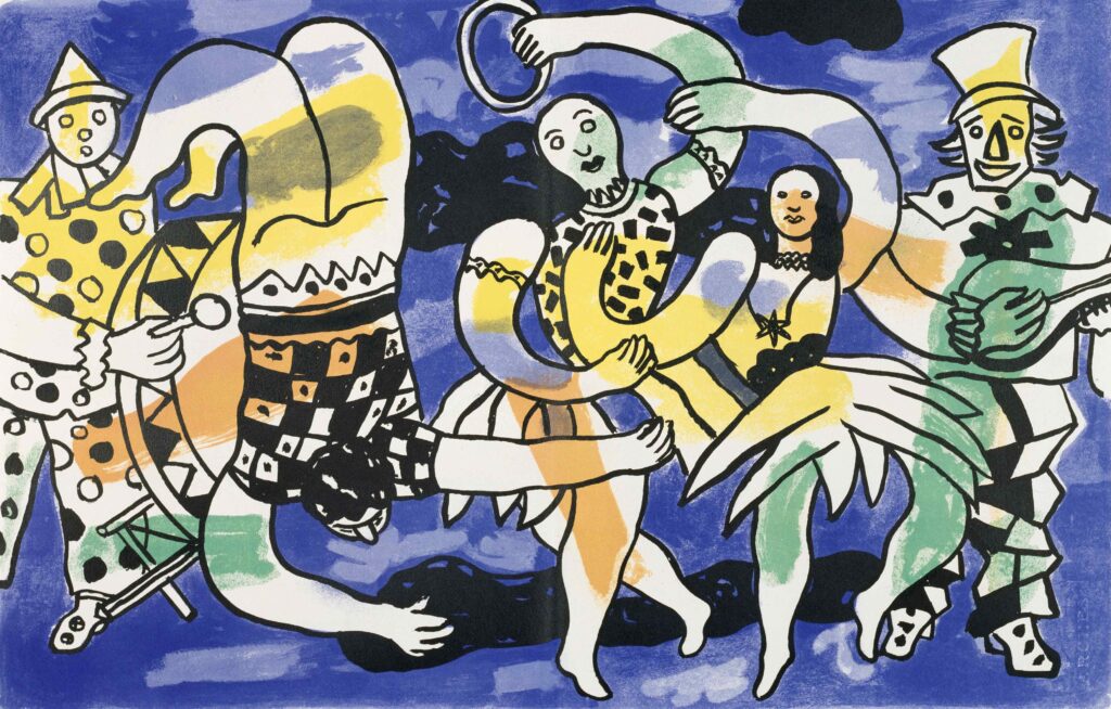 サーカスは、近代の人気のある娯楽として、パブロ・ピカソをはじめ20世紀前半の多くの画家たちに描かれてきました。フェルナン・レジェもまたサーカスをテーマに選び、自ら執筆したテキストとともに83点のリトグラフを収めた挿絵本を作りました。にぎやかで楽しげなイメージがたくさん描かれていますが、フェルナン・レジェの関心は、形の重なり合いに向けられているようです。それぞれ薄い1枚のリトグラフには、複雑に層が重なった世界が広がっています。
