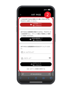 (1)注文確定メールに送信されたURLをクリック または ART PASSマイページにログイン。