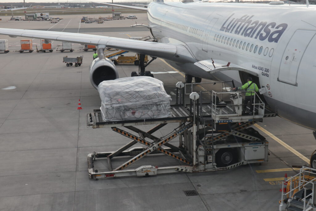 愛知県美術館の所蔵品を海外の美術館へ貸し出す際は、学芸員が現地へ届けるのが決まり。積み込みの直前まで作品に付き添い、安全に取り扱われていることを確認してから搭乗します。