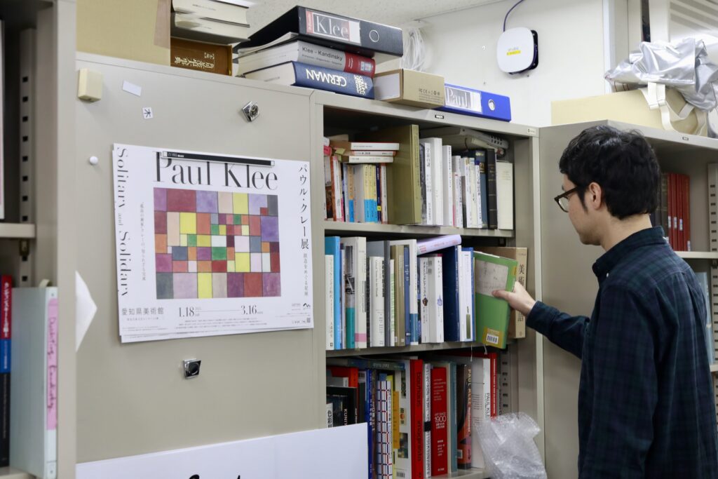 愛知県美術館には、現在15名の学芸員がいます。企画展全体の計画や教育普及活動などを行う企画普及グループと、所蔵品に関わる美術グループの2つに分かれていて、私が現在所属しているのは美術グループ。学芸員によってフランス美術、近世以前の日本美術など、それぞれ専門分野が違い、私は20世紀の近代ドイツ美術が専門です。コレクション展はグループの垣根を越え、いろいろな専門分野の人がテーマごとに展示の内容をつくり上げます。そのスケジュール管理や、今後のラインナップの調整をするのが私の役割です。