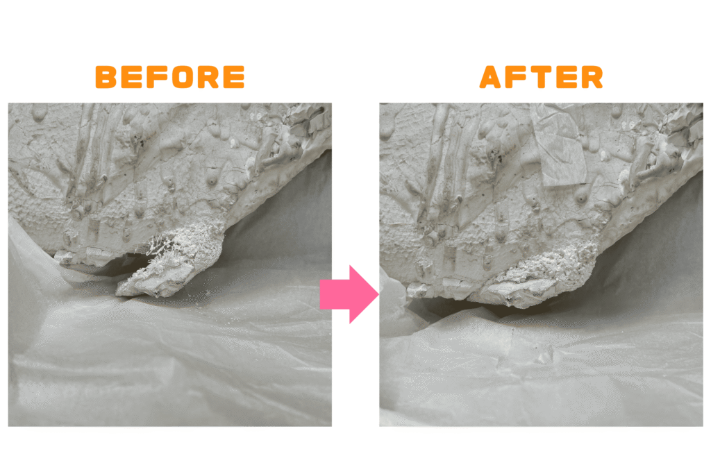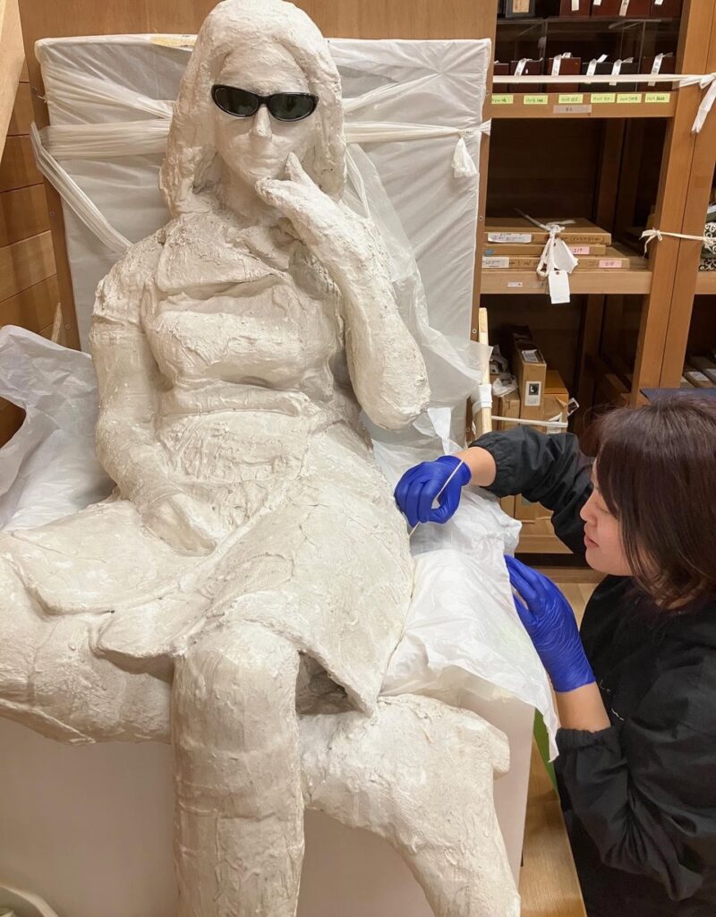 ジョージ・シーガル《ロバート&エセル・スカルの肖像》(1965年)の修復作業の様子。石膏像で、割れている部分を接着しました。
