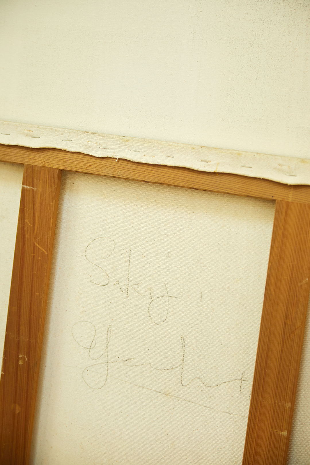 𠮷本 それは、目の前に布があったから使った、という感じです(笑)。ただ、同名シリーズの1枚目を描いたとき、フラットになりすぎる印象があり、もう少し絵の中に距離をつくりたかったのだと思います。薄い絵画の中に、30㎝くらいの箱のような空間を感じられるのが、自分の絵画空間です。油絵でそれだけの厚みを出すのは難しいですが、文楽の書き割りのように、1層目、2層目、3層目と空間が重なって感じられるようにしたくて。当時は、西洋美術では否定的に語られる浮き彫り的な要素も、絵画に必要だと思い、自分の美意識を追いかけてきました。