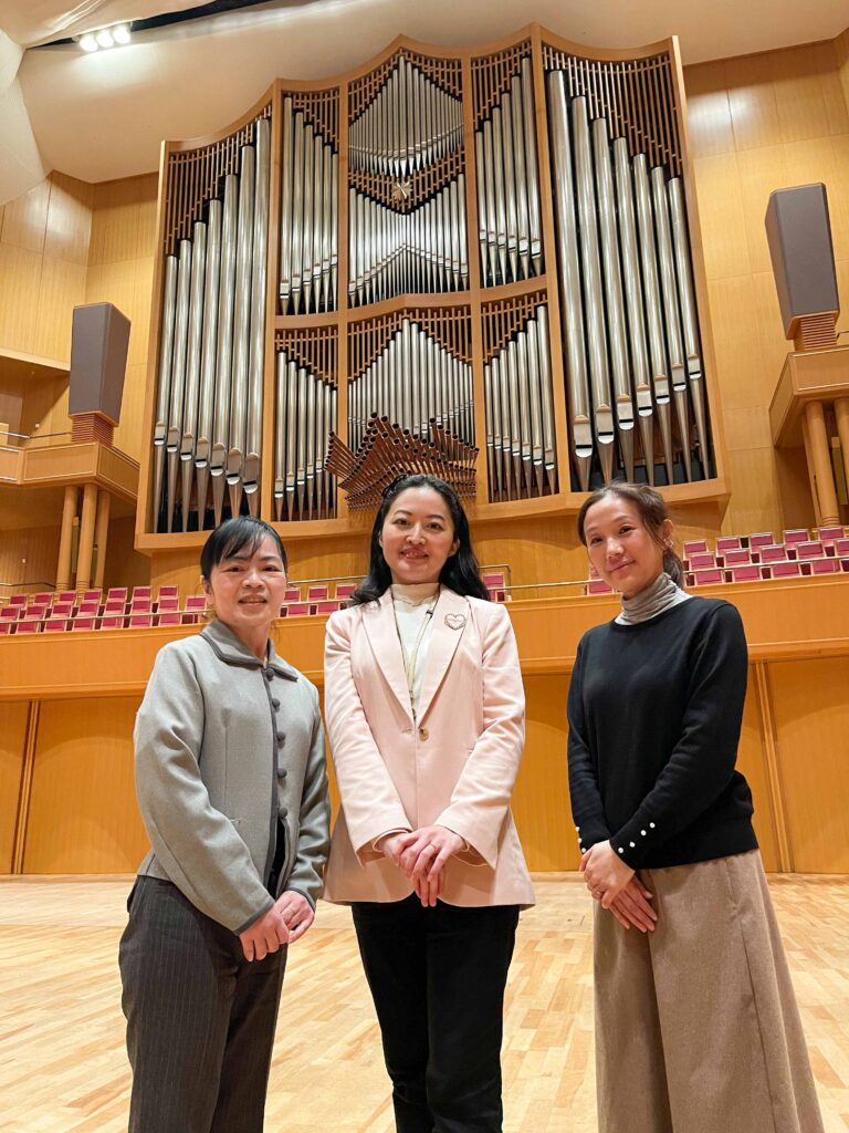 左から関本、都築由理江さん(愛知県芸術劇場オルガニスト)、高木